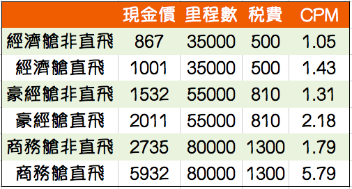 在如此嚴苛的比較下,其實豪經艙跟商務艙直飛還是比較划算.但如果你願意繞來繞去轉機(商務便宜的票甚至要飛到俄羅斯轉機XD)其實買票並不會貴到哪裡...如果把旺季情況計入,其實VS這個自己的兌換表還是不錯的.甚至在商務艙直飛的情況下,每里可以達到將近6美分...如果以美國信用卡回饋率來看是很高的